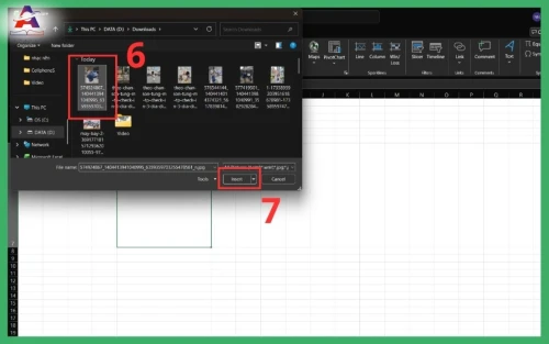 - Chọn file ảnh từ máy tính, sau đó nhấn Insert. Ảnh sẽ được chèn trực tiếp vào ô và tự động căn theo kích thước ô.