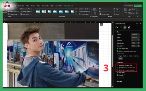 Sau khi đã chèn hình ảnh vào ô, bước tiếp theo là thiết lập thuộc tính để ảnh gắn chặt với ô, đảm bảo khi di chuyển, sắp xếp hoặc chỉnh sửa dữ liệu thì hình ảnh vẫn đi đúng vị trí.