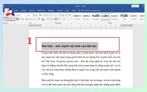 - Mở tài liệu Word mà bạn muốn chỉnh sửa. Dùng chuột bôi đen đoạn văn bản hoặc tiêu đề mà bạn muốn thêm hiệu ứng đổ bóng.
