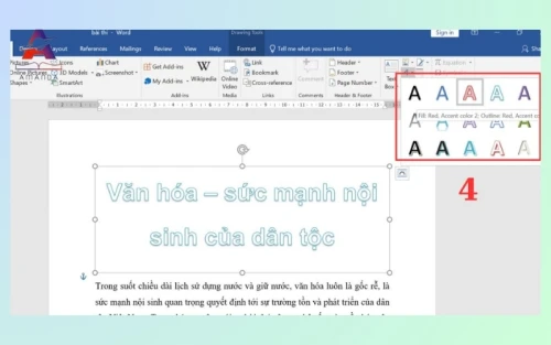 Nếu bạn muốn dòng chữ trở nên nổi bật và có chiều sâu hơn, WordArt chính là công cụ tuyệt vời để tạo hiệu ứng đổ bóng nhanh chóng. Cách làm cụ thể như sau: