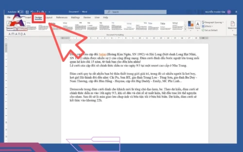 - Bước 1: Mở Microsoft Word và chuyển sang thẻ Design trên thanh công cụ chính.