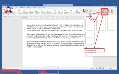 Các bước thêm watermark dạng text trong Word