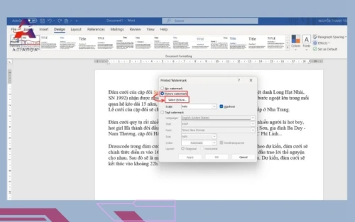 Để làm tài liệu thêm phần sinh động và riêng biệt, bạn có thể thêm watermark bằng hình ảnh hoặc logo. Dưới đây là hướng dẫn chi tiết từng bước chèn watermark trong Word dạng hình ảnh/logo: