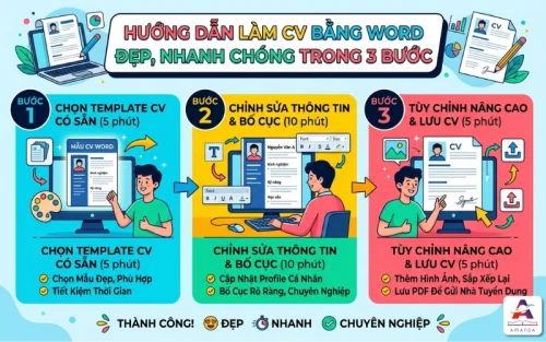 Làm CV bằng Word là kỹ năng nền tảng nhưng vô cùng quan trọng đối với bất kỳ ứng viên nào trong thời đại số. Tại Tin học Hải Phòng Amanda, chúng tôi tin rằng một bản CV được trau chuốt kỹ lưỡng trên Word không chỉ thể hiện năng lực chuyên môn mà còn là minh chứng cho kỹ năng tin học văn phòng tinh tế của bạn.