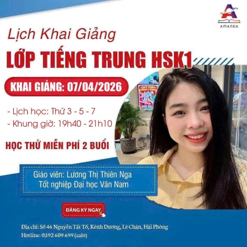 Trên đây là tổng quan lịch khai giảng Tiếng Trung HSK 1 tháng 4/2026 mới nhất tại Hải Phòng. Để biết thêm thông tin chi tiết về lộ trình học, chính sách cam kết và đăng ký khóa học phù hợp, vui lòng liên hệ với Trung tâm Tiếng Trung Hải Phòng Amanda ngay hôm nay để nhận ưu đãi sớm nhất
